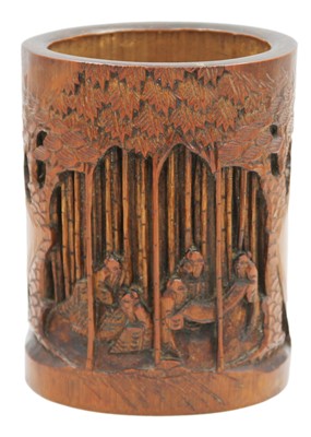 Lot 489 - A Chinese bamboo brush pot, 19th century.