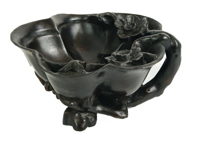 Lot 490 - A Chinese carved wood libation cup, late 19th century.