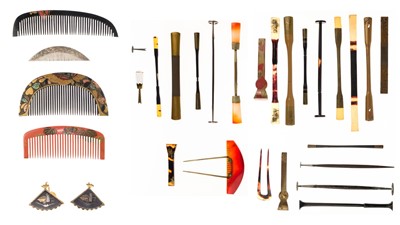 Lot 496 - Eighteen Japanese lacquer kogai, 19th/20th century.