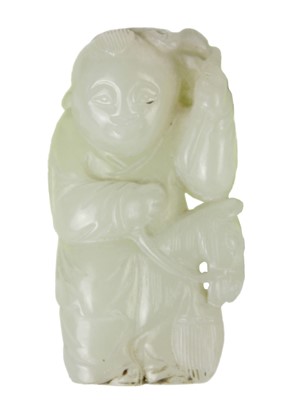 Lot 524 - A Chinese carved jade figure of a boy, Qing Dynasty, 19th century