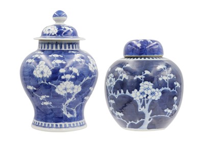 Lot 506 - A large Chinese blue and white prunus blossom ginger jar, circa 1900.