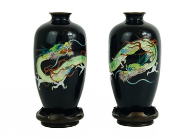 Lot 509 - A pair of Japanese ginbari dragon vases, 19th century.
