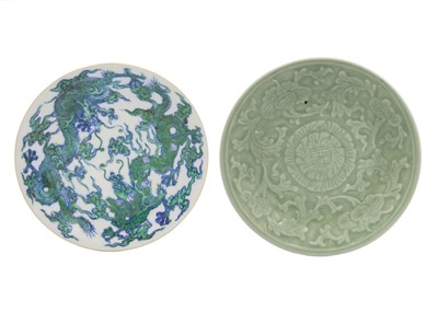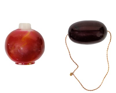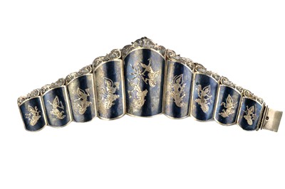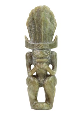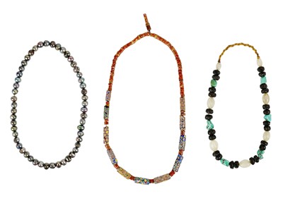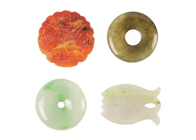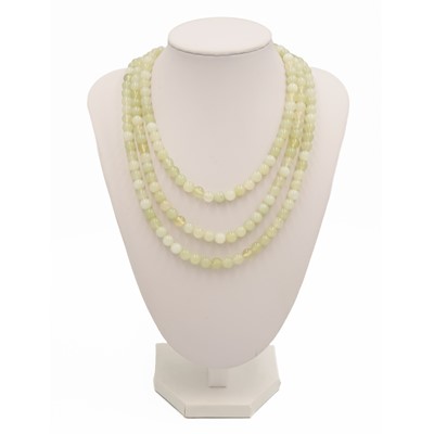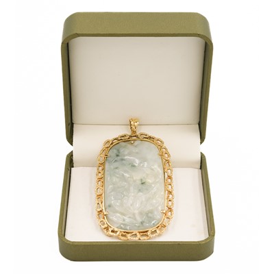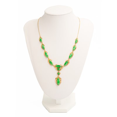 Lot 614 - An Art Nouveau jade and 14ct mounted necklace, with enclosed back and stamped 14k.