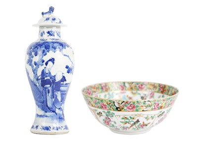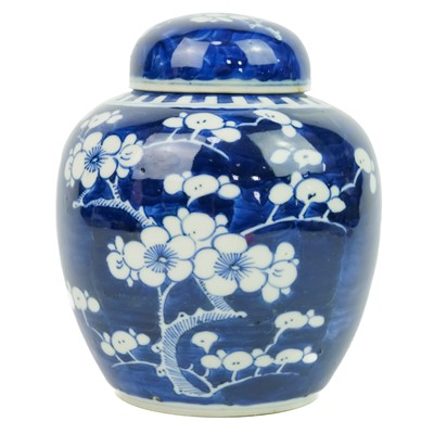 Lot 624 - A Chinese blue & white prunus blossom pattern ginger jar & cover, circa 1900.