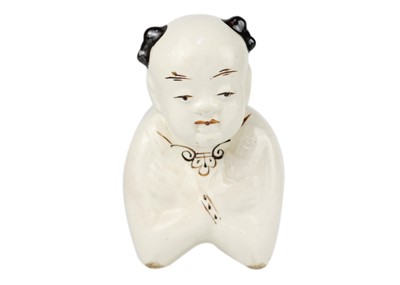Lot 660 - A Chinese blanc de chine pillow modelled as a boy, Qing Dynasty, 19th century.