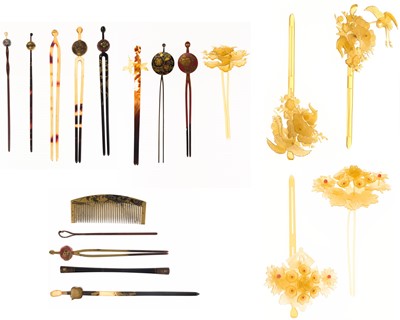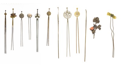 Lot 676 - Fifteen various Japanese metal kanzashi, (hairpins)19th/20th century.