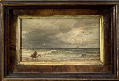 A Horseman and his dog on the foreshore