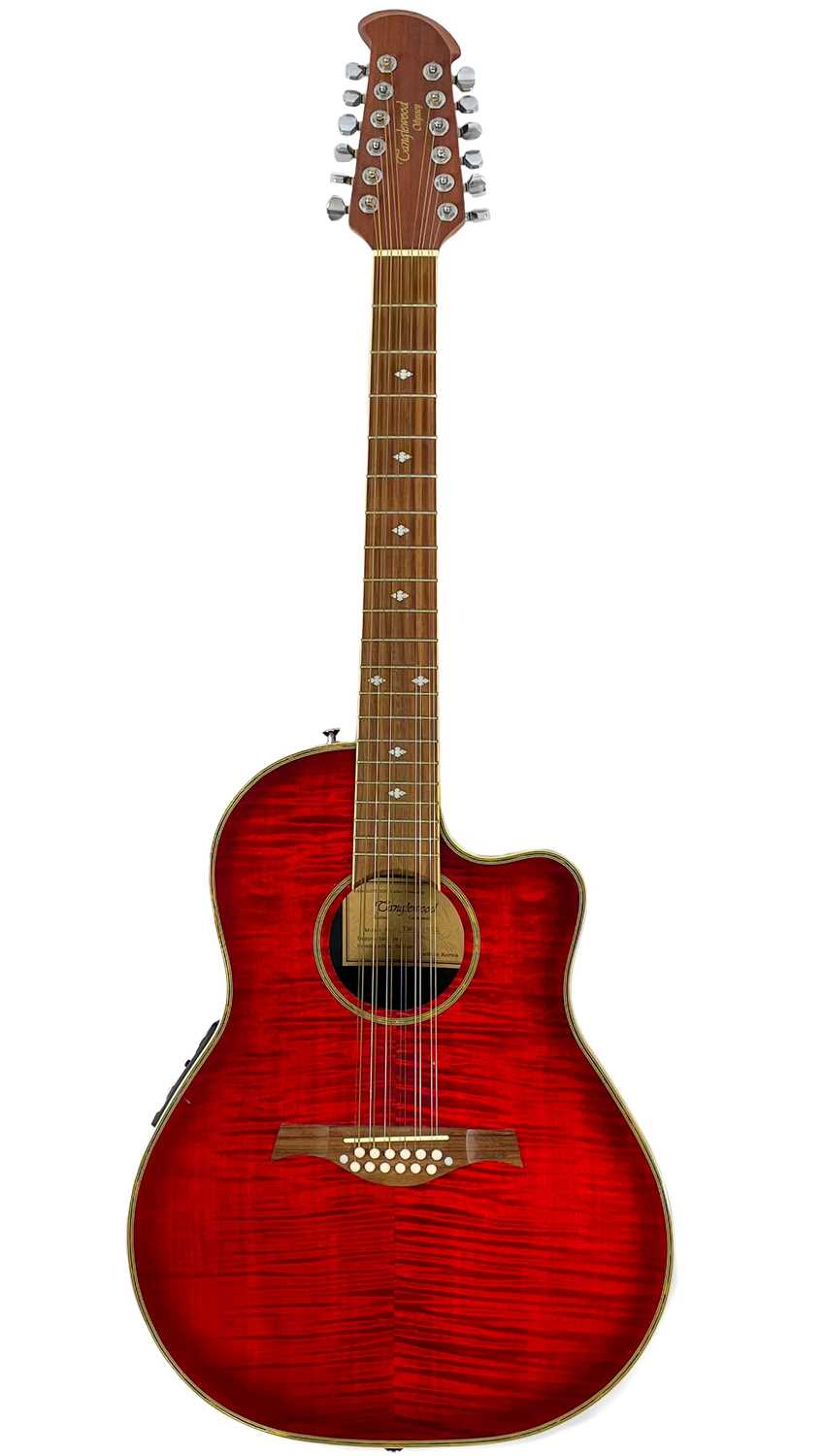 Twelve string bowl back electro acoustic guitar, Finish: transparent red burst.