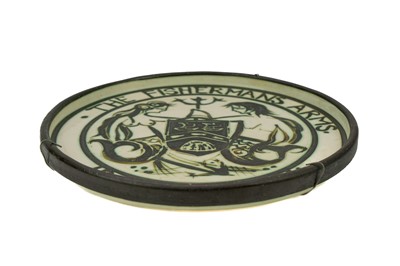 Commissioned for the landlords of The Fisherman's Arms public house in Newlyn and inscribed 'Ida.1970.Jack', diameter 32.5cm.