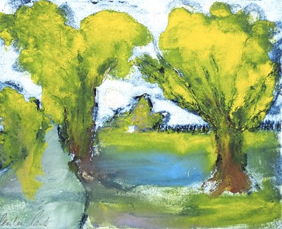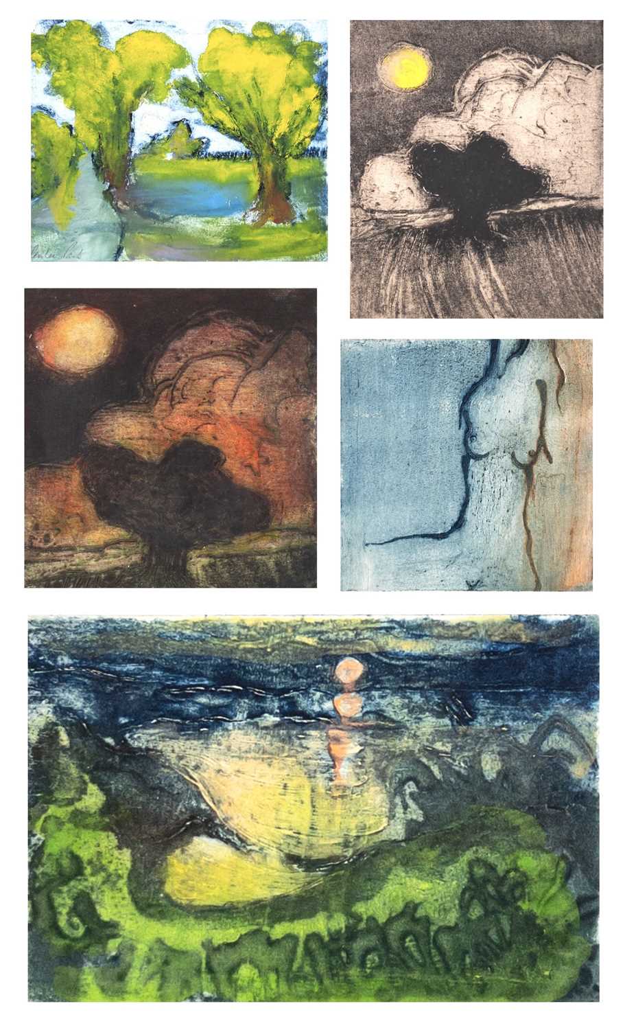 Monoprint signed titled and dated, inscribed ''Mona and Ian's Favourite Penlee Park walk''. (9)