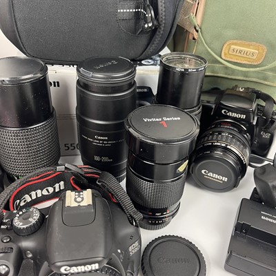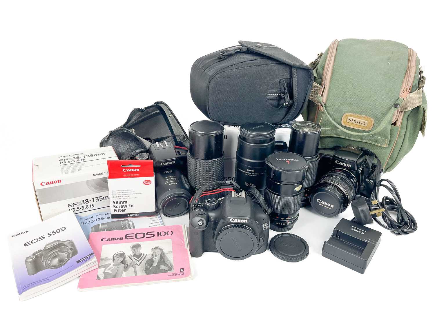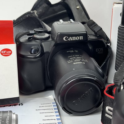 Together with a Canon EOS 700 SLR camera fitted with a Canon Zoom Lens EF 35-80mm, a Canon EOS 100 SLR camera fitted with a Canon Ultrasonic 28-105cm lens, a Canon EFS 18-135mm lens, Canon EF 100-200mm, a Vivitar Series 1 28-90mm lens, a Cosinon 80-200mm lens and a Miranda 70-210mm lens.