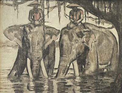 Lot 699 - § Paul JOUVE (1878-1973) Two Elephants Oil on...