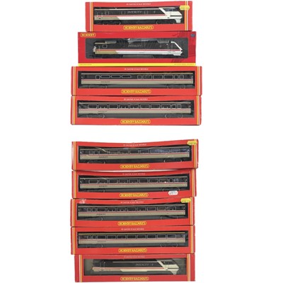 Lot 518 - "OO" Hornby early livery boxed 125 Intercity HST power cars (x2) and carriages (x9)