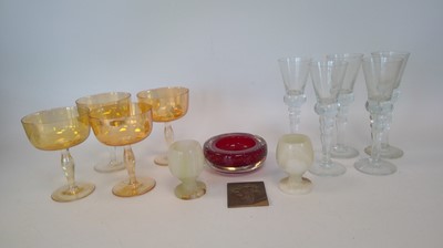 Lot 78 - A controlled red bubble dish (10cm wide), two...