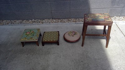 Lot 76 - An Upholstered Stool and Three Footstools. The...