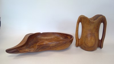 Lot 87 - Spanish olive wood twin-handled jug and...