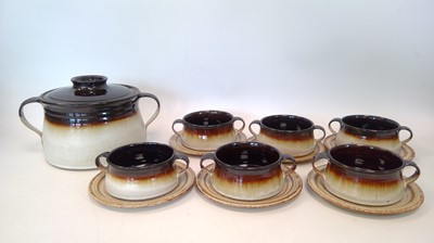 Lot 73 - A stoneware casserole dish, with six low bowls...