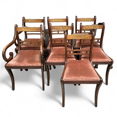 Lot 95 - A set of seven good brass inlaid mahogany...