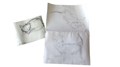 Lot 70 - Three pencil sketches of cats, indistinctly...
