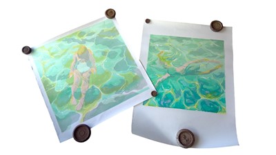 Lot 71 - Two screen printed images of women swimming,...