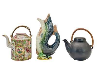 Lot 319 - A Canton Famille Rose teapot.