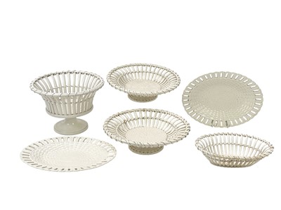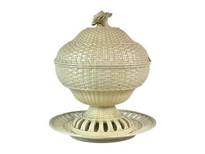 Lot 322 - An 18th century creamware chestnut bowl and cover with stand.