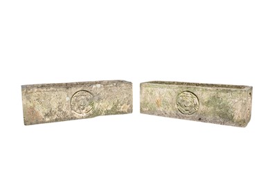 Lot 375 - A pair of composition stone garden planters of rectangular form.