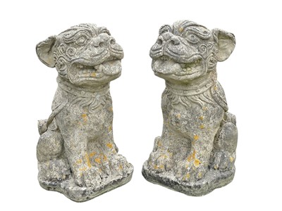 Lot 382 - A pair of reconstituted stone Foo Dog dog garden sculptures.