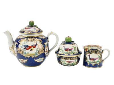 Lot 372 - A Worcester style blue scale ground teapot, sugar bowl and milk jug.