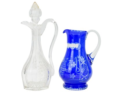 Lot 373 - A blue overlay glass jug.