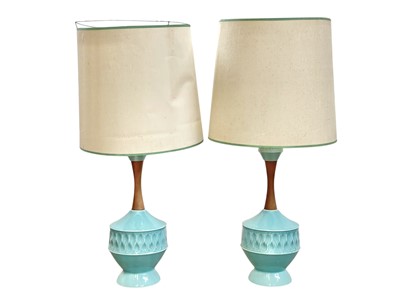 Lot 427 - A pair of turquoise glazed ceramic table lamps.