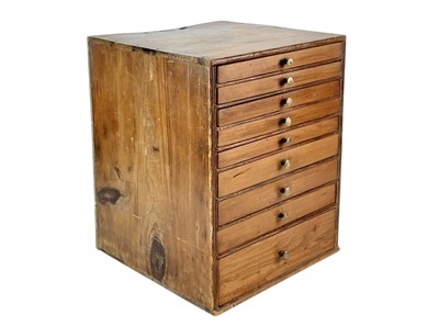 Lot 432 - A late 19th/early 20th century pine nine drawer specimen or collector's cabinet.